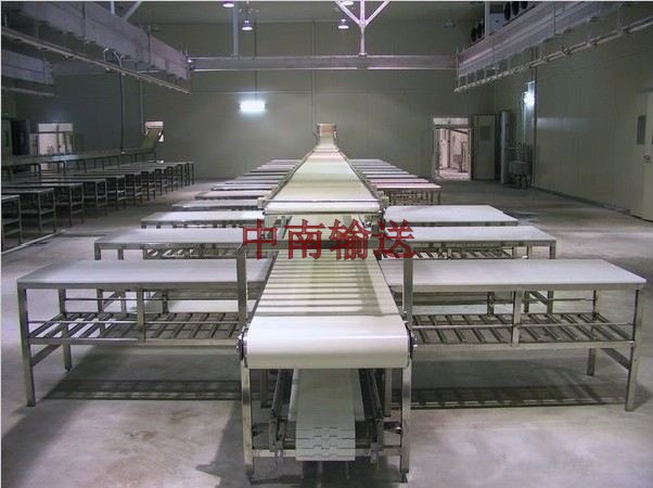 分割輸送機又稱(chēng)不銹鋼尼龍輸送線(xiàn),是分割肉流水線(xiàn)生產(chǎn)的主要設備之一。適用于牲畜胴體劈半、預冷、排酸后的剔骨、分割,該機的機架體全部采用不銹鋼材料。輸送帶為無(wú)毒尼龍輸送帶,為使經(jīng)久耐用,采用了無(wú)接頭的特制方式,使該機在使用中達到了無(wú)噪音,輸送帶無(wú)偏斜現象發(fā)生,機腳座采用尼龍活動(dòng)腳,安裝調式輸簡(jiǎn)便,機架選料為無(wú)縫不銹鋼方管,解決發(fā)積垢污染問(wèn)題。使設備的衛生條件達到了分割車(chē)間對外注冊的標準,并使剔骨、分割肉生產(chǎn)輸送自動(dòng)化。