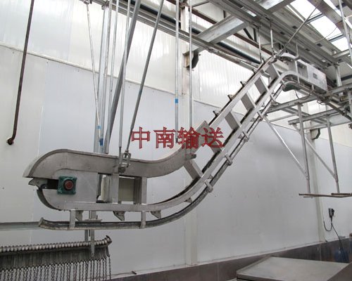 毛豬管軌提升機:用于將致昏、放血后的豬屠體提升,進(jìn)入到控血輸送機自動(dòng)喂入的緩沖軌道,或直接進(jìn)入控血輸送機。